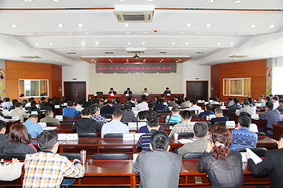 4月18日,学校2017年度综治维稳安全工作会议在一办九楼会议室召开,校领导、副处级以上干部参加,会议由校党委副书记邹宏如主持。校党委书记付宏渊作重要讲话。