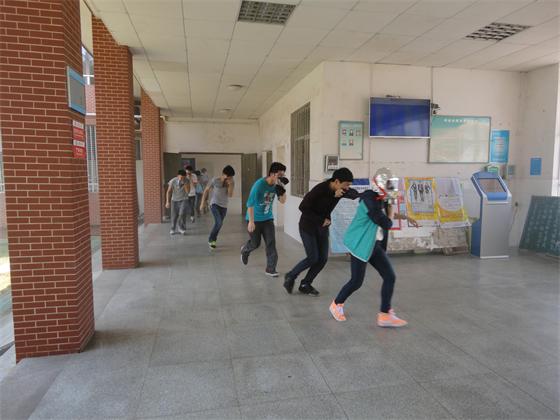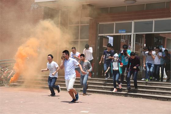 中午1时,在各项准备工作就绪后,刘扬下达“演练开始”指令,至诚轩四栋随即断电,各楼层浓烟滚滚,警报响起,疏散逃生演练活动正式开始。1500余名学生在消防教员和保卫干部的指挥下,各学院辅导员、宿管人员、消防志愿者的带领下,或佩戴防毒面具,或用湿毛巾捂住口鼻、弯着腰,井然有序地迅速撤出宿舍楼‘短短十分钟内,学生顺利撤离到安全地点。整个过程紧张有序,没有出现拥挤、摔倒现象。