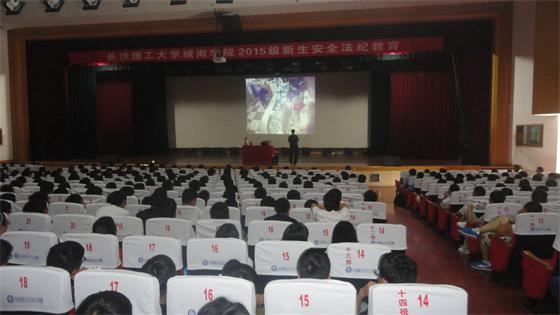9月22日,保卫处分两场组织城南学院2015级全体新生参加消防安全知识讲座和应急疏散逃生及灭火演练活动。
