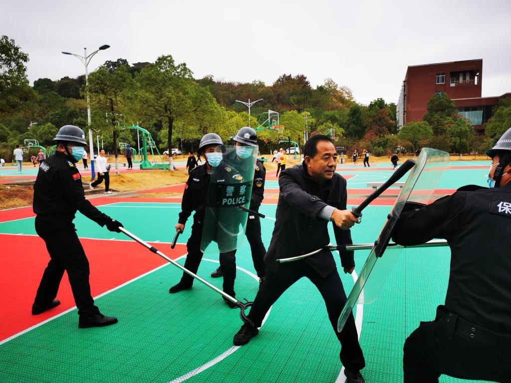 培训中,暮云派出所副所长宋凡向安保人员详细讲解了反恐防暴基本要点、基本技能和防暴器械的使用,并组织进行了实际操练。