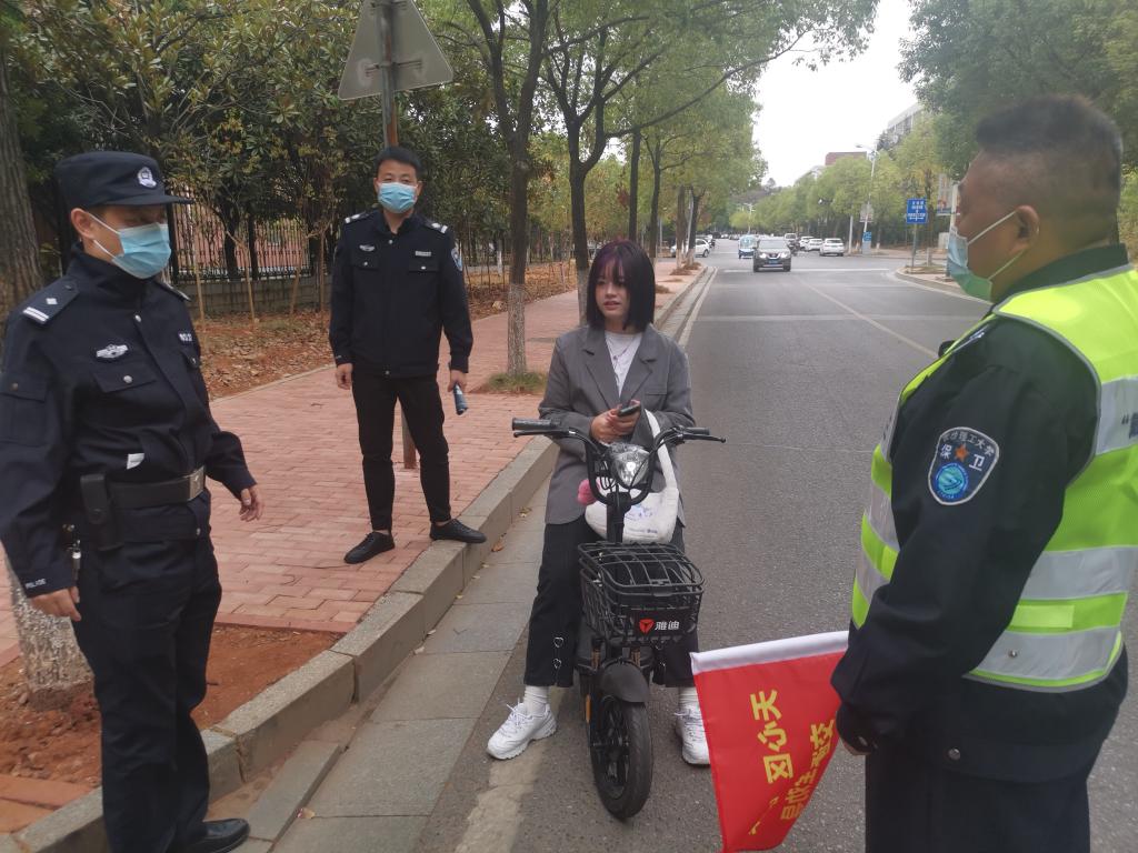 活动中,保卫干部们身着“交通安全”服,手持“交通安全劝导”旗帜,现场对没有佩戴头盔骑乘电动车的师生进行劝导、讲解典型事故案例,强调骑乘电动车、摩托车不佩戴安全头盔的严重危害和后果,着重宣传“一带一盔”的重要性,引导广大师生要养成骑乘电动车、摩托车时自觉佩戴安全头盔的良好习惯。