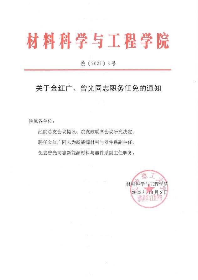 关于金红广、曾光同志职务任免的通知