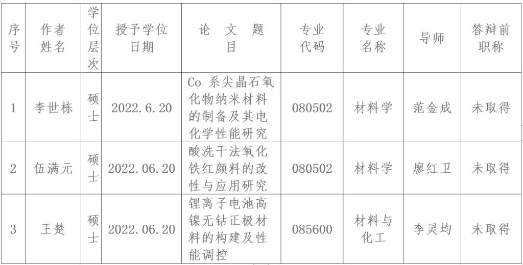 根据湖南省教育厅《关于开展2024年湖南省优秀博士、硕士学位论文评选工作的通知》(湘教通〔2024〕97号)和《关于开展2024年william威廉中文官网优秀博士、硕士学位论文评选和湖南省优秀学位论文推荐工作的通知》精神,经学生自愿申请,学院学位评定分委员会进行评审并表决,拟推荐李世栋等三位同学的硕士学位论文参评2024年william威廉中文官网校级优秀硕士学位论文。