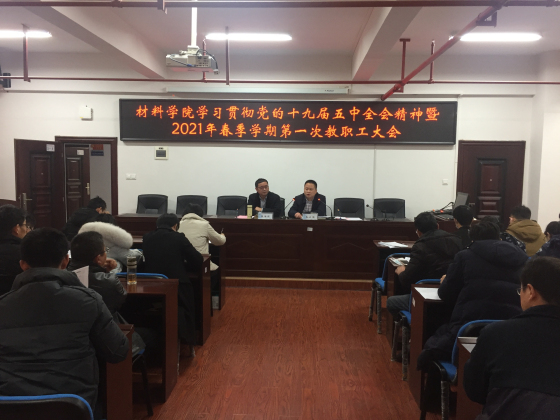 材料学院召开学习贯彻党的十九届五中全会精神暨2021年春季学期第一次教职工大会
