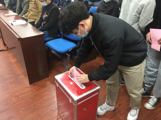 大会选举环节由1名监票人和2名计票人共同完成清点人数、检查票箱、分发选票以及报告发票情况等工作,所有参会正式党员严格按照选举办法的规定填写选票,在充分发扬民主的基础上,采取无记名投票、差额选举的方式,选举产生了(按姓氏笔画为序):李海斌、张国强、陈华三名同志出席学校第四次党代会党员代表。