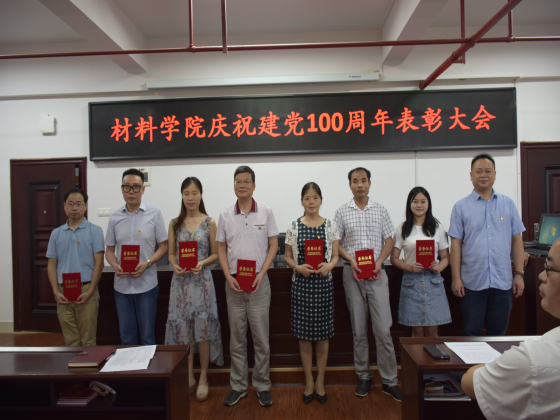 为庆祝建党100周年,更好地推动党史学习教育,把“学史明理、学史增信、学史崇德、学史力行”落到实处, 7月1日上午8:00,材料学院在新能源大楼1-302会议室举行了庆祝建党100周年表彰大会。会议由院党总支副书记陈华主持,学院全体师生党员参加了会议。
