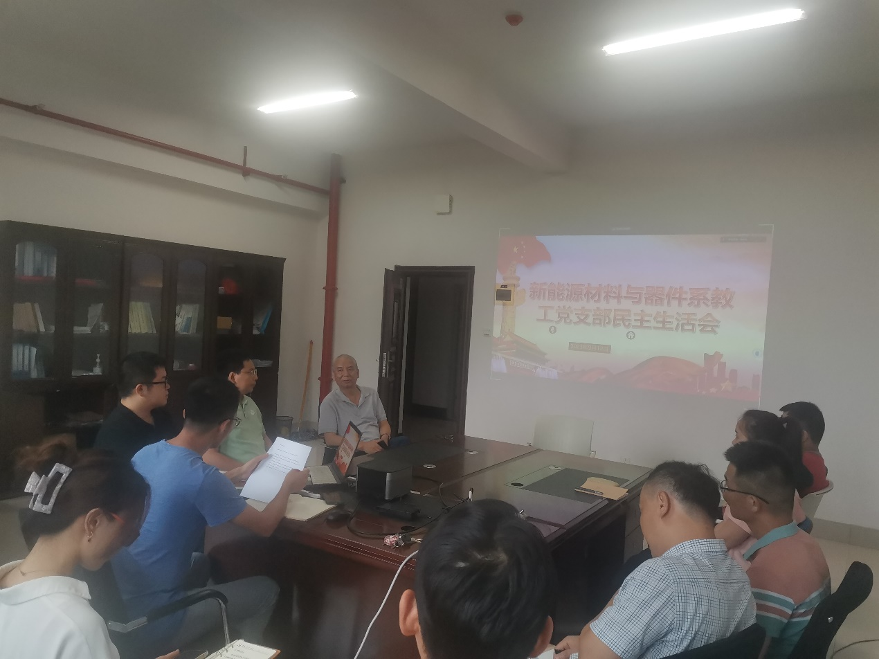 9月12日下午,新能源材料与器件系教工党支部在新能源大楼1-305召开主题教育专题组织生活会,支部书记秦伟主持,支部党员参加。