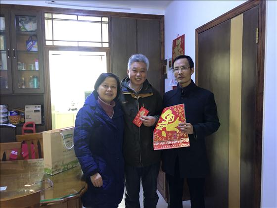 1月14日上午,材料学院党总支副书记唐青、副院长范金成带领学院系主任及老师代表一起,分别专程走访并慰问了学院联系、并在长沙居住的6位离退休教师,送上春节问候。