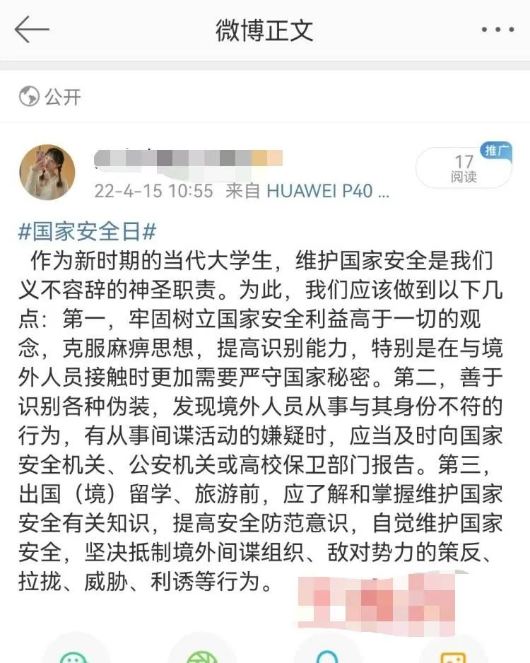 2022年4月15日是第七个全民国家安全教育日,学院根据省教育厅、学校党委有关工作部署,制定并落实了在学生中开展全民国家安全教育日宣传教育活动的详细方案,通过集中统一观看国家安全教育公开课、宣传视频等方式学习相关知识,以微博、微信、bilibili客户端等学生喜闻乐见的形式进行宣传报道,突出了“树牢总体国家安全观,感悟新时代国家安全成就,为迎接党的二十大胜利召开营造良好氛围”的教育主题,进一步围绕主题组织了学生在由教育部、公安部组织中国大学生在线、全国高校思政网等举办的多项线上主题活动参与互动和讨论,形成了全民参与的良好氛围。