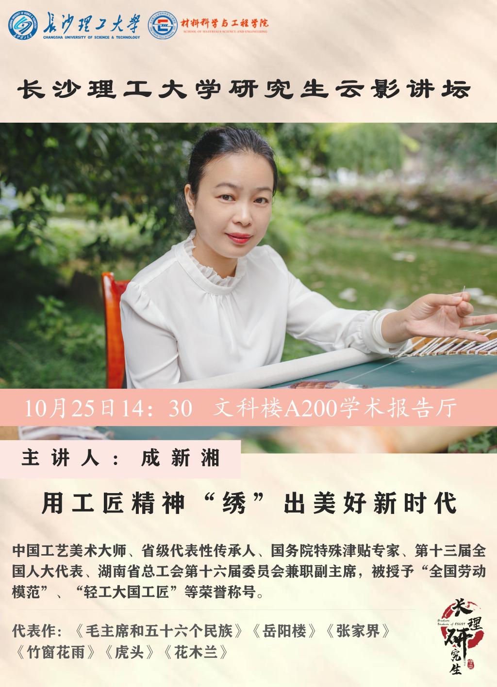 讲坛主题:研究生云影讲坛—用工匠精神“绣”出美好新时代