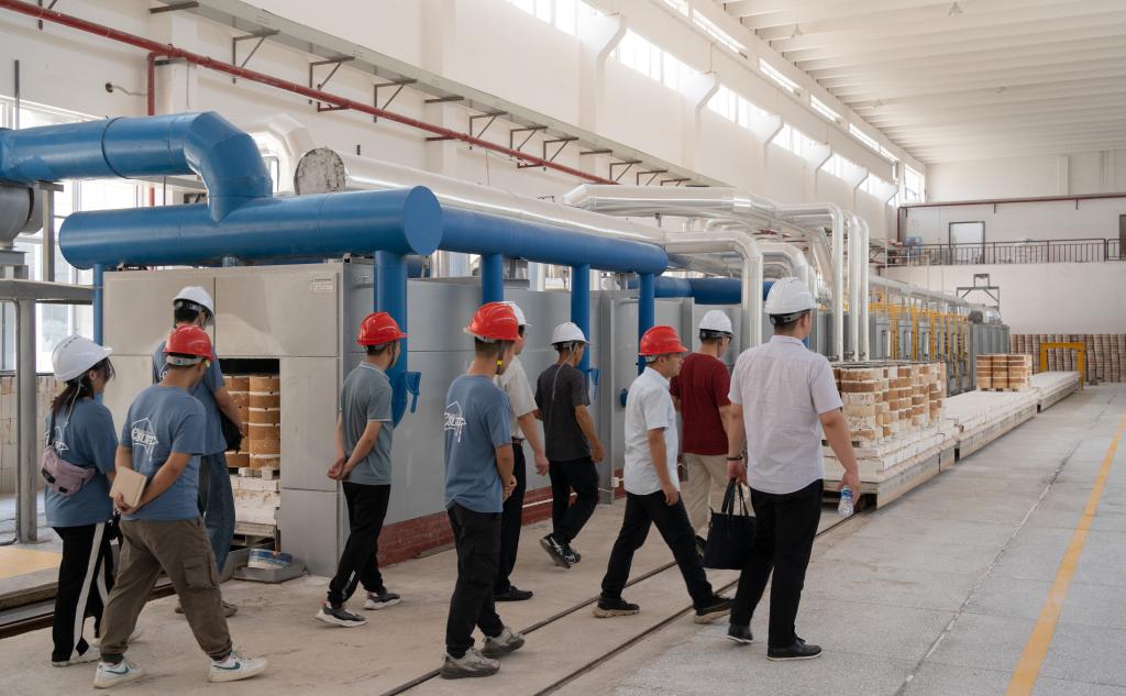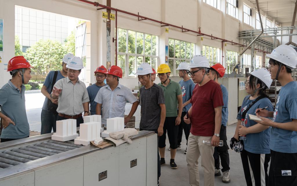 耐磨陶瓷衬板、耐磨陶瓷弯头、陶瓷防弹片等,当实践团踏入精城特瓷的招待室,映入眼帘的便是各种耐磨陶瓷内衬设备。精城特瓷成立于1993年,一直专注于工业设备防磨技术的研发和应用近30年,是中国具有一定规模的特种陶瓷生产企业,被新老客户们誉为“真正经得起磨损,耐得住冲击的好陶瓷”。精城特瓷总经理杨政对实践团的到来表示热烈欢迎,首先带领实践团参观了产品展示区,详细介绍了产品性能优势。实践团与精城特瓷总经理及研发经理开展座谈会,关于耐磨特种陶瓷产品和生产工艺以及新冠疫情影响下公司的发展现状进行了深入交流。实践团了解到疫情在一定程度上影响了公司的运营。受疫情影响,公司在外贸方面难以和客户面对面沟通,只能通过视频会议的方式来商谈合作,有时沟通不及时,导致工作效率降低。其次,在生产方面,原材料供应不及时,特别是一些重要的添加剂,购买困难。针对疫情,国家也出台了相关政策,如缓税,当地政府也拨款20万来保证就业。会后,实践团跟随杨政总经理参观了各个车间,近距离观察耐磨陶瓷的生产过程,研发经理也向实践团详细讲解其原理并为实践团解疑答惑。实践团指导老师也在参观过程中深入探讨了设备和工艺的可靠性并针对性地给出了建议。最后,实践团与精城特瓷签署了研究生暑期社会实践基地协议并授牌,促进产学研合作。