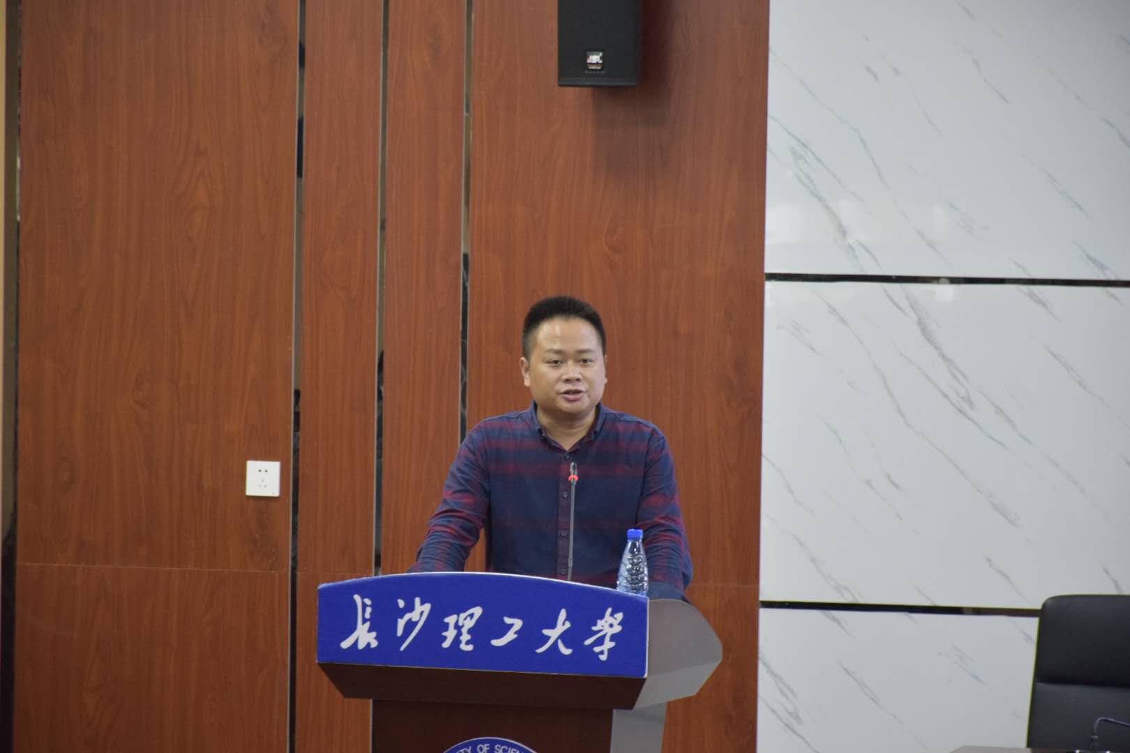 9月30日下午,材料学院院长毛卫国教授在金盆岭四教报告厅为2020级全体新生讲授“新生第一课”。