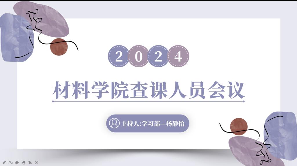 首先,杨静怡介绍了材料学院查课的目的。接着,她详细说明了查课流程和相关注意事项。随后,她重点讲解了各位查课人员需要谨记的查课注意事项。紧接着针对上述的阐述存有疑问的查课人员连麦,开展提问环节,主持人杨静怡为其详细解答。最后,王志亮老师总结发言,再次强调了查课制度的重要性,同时表达了对新任查课人员的期望与要求。