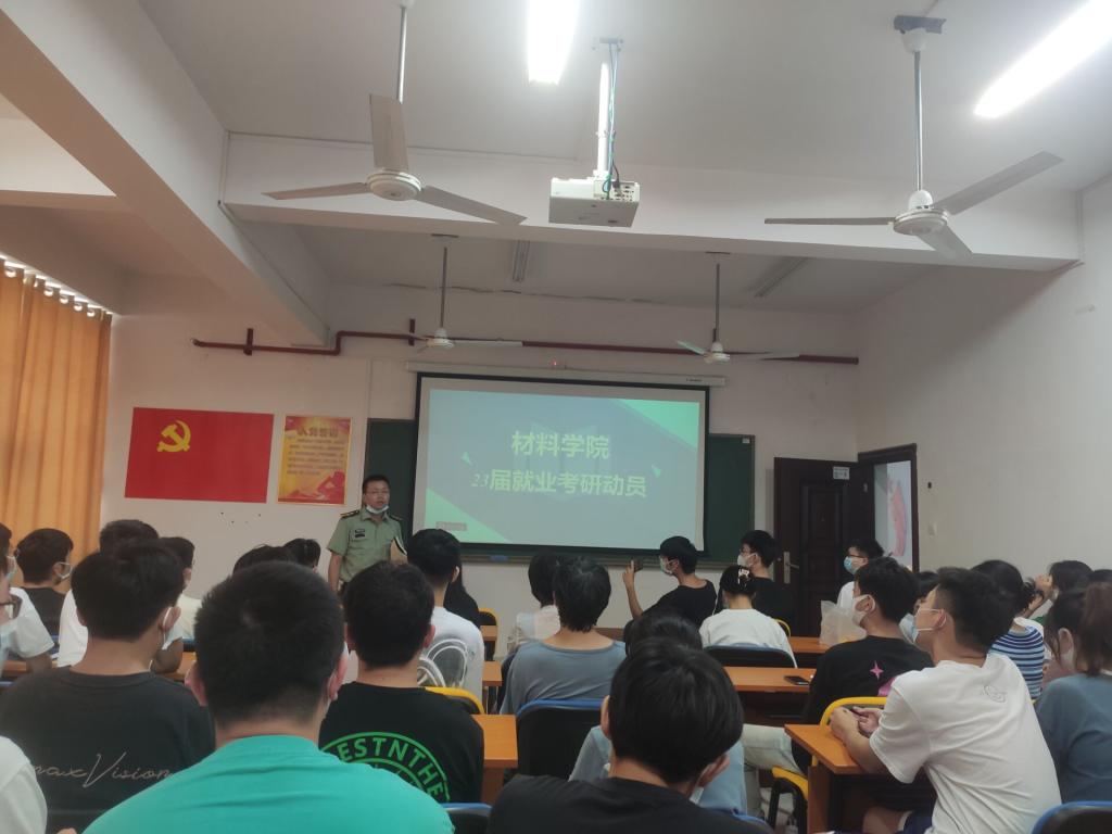 9月2日下午,材料学院在新能源大楼一号楼303和302分专业分班级召开2023届毕业生考研就业动员大会,材料学院党总支副书记陈华、就业辅导员谢易真、年级辅导员谭方林及2023届全体毕业生参会。