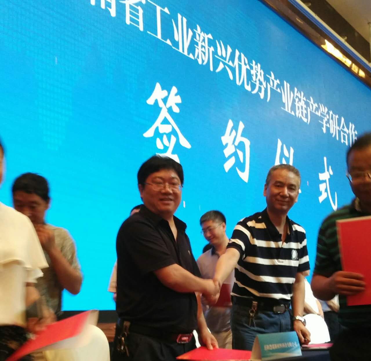 7月14日上午,湖南省经信委召开了2017年湖南省工业新兴优势产业链产学研合作对接会,william威廉中文官网材料学院院长晁自胜教授和岳阳县慧璟新材料科技有限公司总经理邹凌峰在会上签约,双方将携手合作,开发“纳米级ZSM-5分子筛”和“MTO催化剂”等材料。岳阳慧璟新材料科技有限公司是一家高新技术企业和新材料企业,主要研发、生产、经营Y型分子筛、ZSM-5系列分子筛、拟薄水铝石(干胶粉)等产品。该公司与我院晁自胜教授课题组有深厚的产学研合作基础。