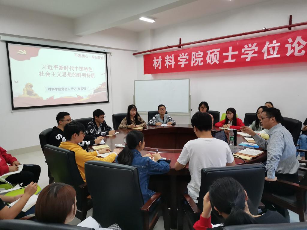 10月18-20日,材料学院全体研究生、本科生班级依次召开“不忘初心、牢记使命”主题教育专题班会,对主题教育的核心内容以及习近平新时代中国特色社会主义思想进行了集中学习交流,各班班主任、下班党员及全体成员参与。此次班会达到了全院学生全覆盖、院领导班子全参与,材料学院精心编织了班会预习资料,制作了自测题,播放了主题纪录片,丰富班会形式,深化学习效果。