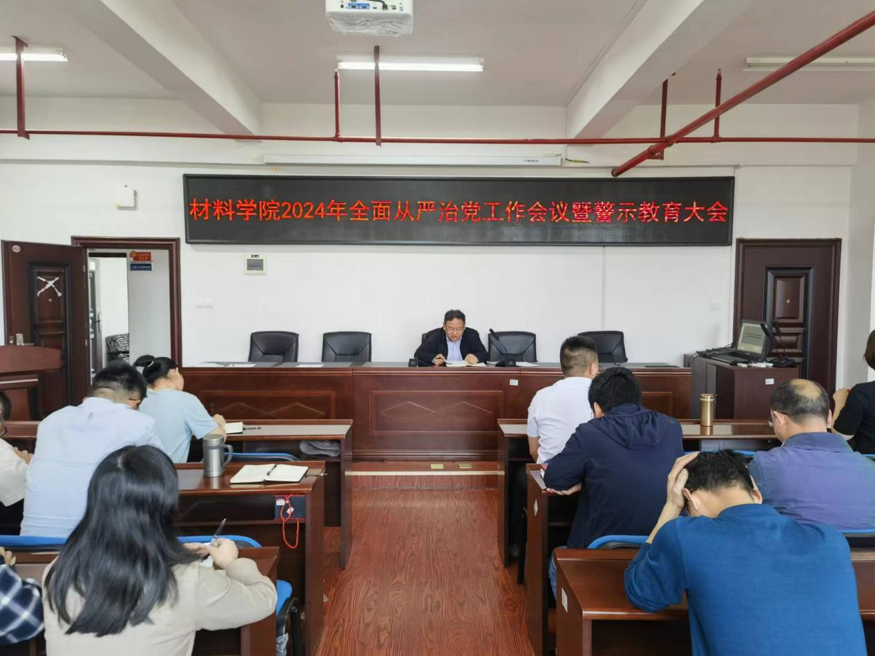 2024年4月23日下午,学院在新能源大楼1-302会议室组织召开2024年全面从严治党工作会议暨警示教育大会。全面总结2023年学院全面从严治党工作,部署2024年工作任务,开展警示教育。会议由院党委书记唐超文主持,全体教职工党员参会。