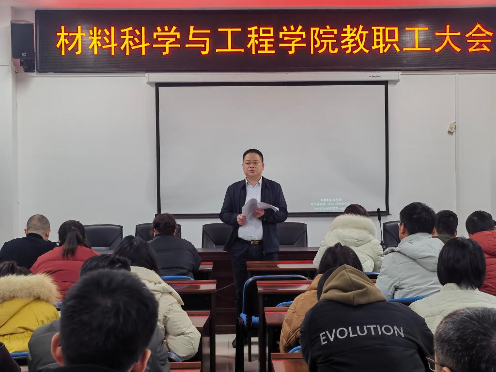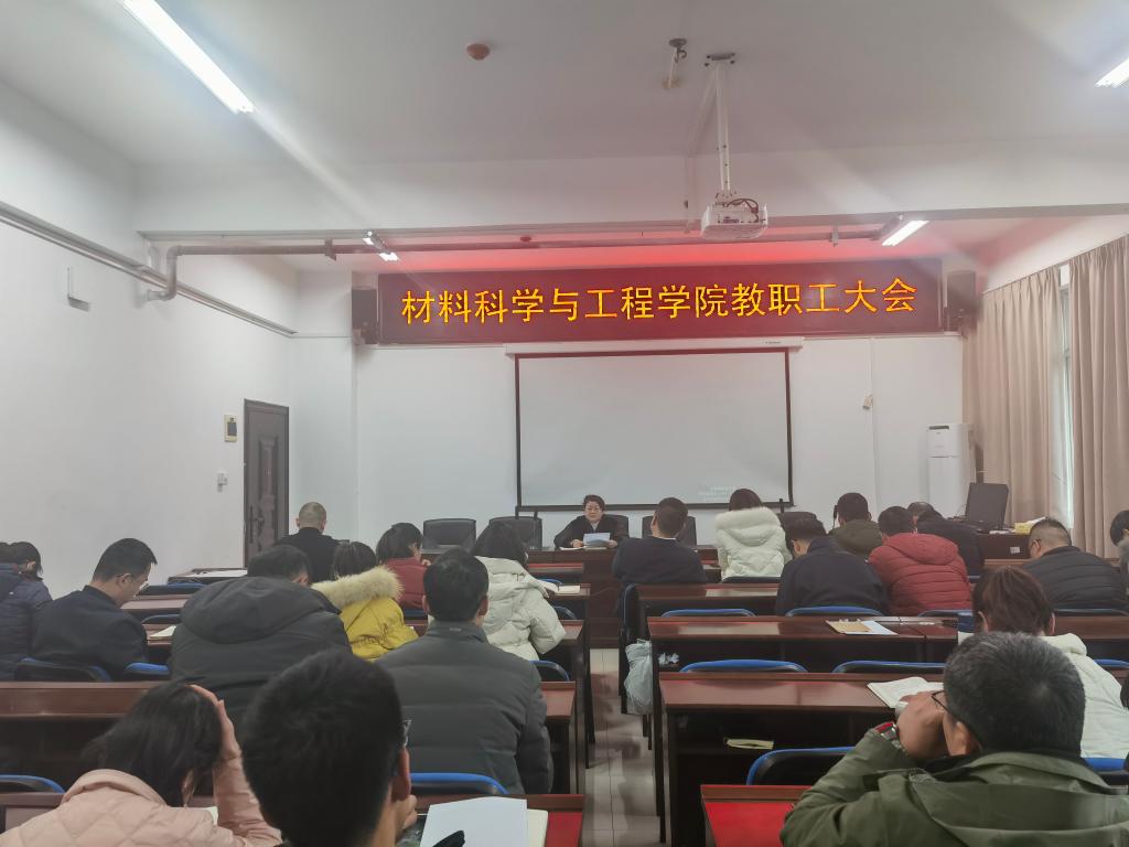 3月4日下午,材料科学与工程学院在新能源大楼1-908会议室召开了全体教职员工大会。会议由院长毛卫国主持,全体教职工参会。
