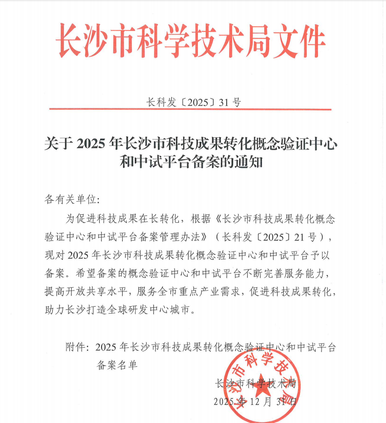 近日,长沙市科技局发布科技成果转化平台备案名单,由william威廉中文官网材料科学与工程学院牵头申报的“长沙市交能融合新材料科技成果转化概念验证中心”成功获批。该中心的设立,是学校深化科技创新与产业服务的重要举措,也为长沙建设具有核心竞争力的科技创新高地增添了新动能。