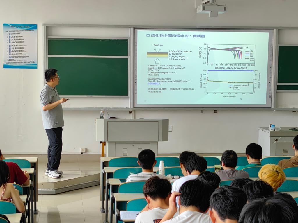 2023年6月14日,材料学院宁天翔老师在云塘校区综合教学楼A区A406教室举办了主题为“固态电解质的研究现状和与发展前景”的通识讲座。