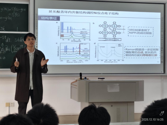 讲座还分享了其发表于《JACS》《Nature Communications》等期刊的成果,并与学生交流讨论。