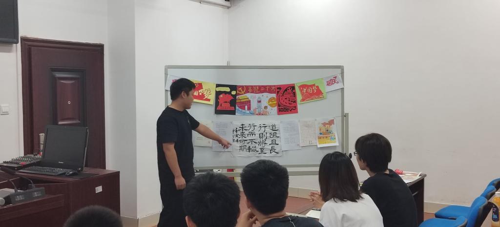 会议开始,黄玉带领全体党员重温入党誓词,全体党员在党旗下庄严宣誓。接着,何艺璇组织全体党员共同观看《习近平谈治国理政》第四卷学习视频,视频传达出了《习近平谈治国理政》第四卷的主要内容和重要意义。视频结束后,党员代表熊田、杨明月和章鑫宇分享了自己的学习感悟,表明身为党员要坚定理想信念,紧跟党的步伐,以实际行动继续向第二个百年奋斗目标迈进。随后进行了“献礼祖国,喜迎二十大”作品展示,同景天、曾子坚分享了自己的作品,以“道阻且长,行则将至”表明在党的带领下,我们不断前行,未来可期。会议最后,支部书记谭方林进行会议总结,他提出学生党员首先要努力学习,不断提升自己,才能在未来更好的服务社会,同时强调了实践的重要性,希望全体党员拓宽自己的眼界。