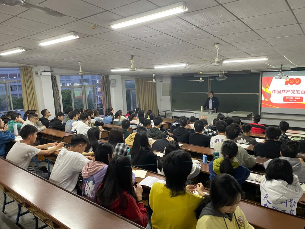 4月15日晚,材料学院第37期入党积极分子培训班第二次专题党课在金盆岭校区12教515教室举行。本次党课由材料学院党总支书记张国强主讲,主题为“中国共产党的百年辉煌”,金盆岭校区第37期入党积极分子全体参与。