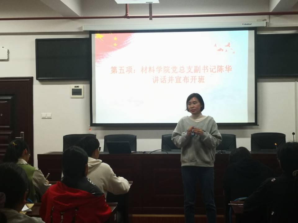 10月26日晚,材料学院分党校培训班开班仪式在新能源一号楼302举行。材料学院党总支副书记陈华、党建辅导员银波出席,第36期入党积极分子、第12期发展对象、第22期预备党员全体学员参会。