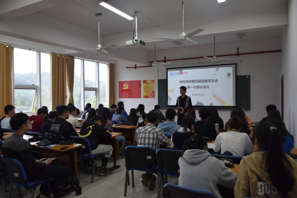 9月22日,材料学院第四届团委学生会第一次部长会议于新能源一号楼303室召开。院团委书记陈鑫林出席会议,团学会主席团成员、全体部长参会,本次会议由团学会主席高春旺主持。