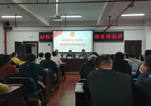 11月12日,材料学院于新能源1号楼302会议室进行了第四期卓越管理者培训班第二次授课,院长卢章辉、院党总支书记张国强、副书记唐青及院团委书记陈鑫林出席会议。此次课程由张国强主讲,第四期培训班学员参加。