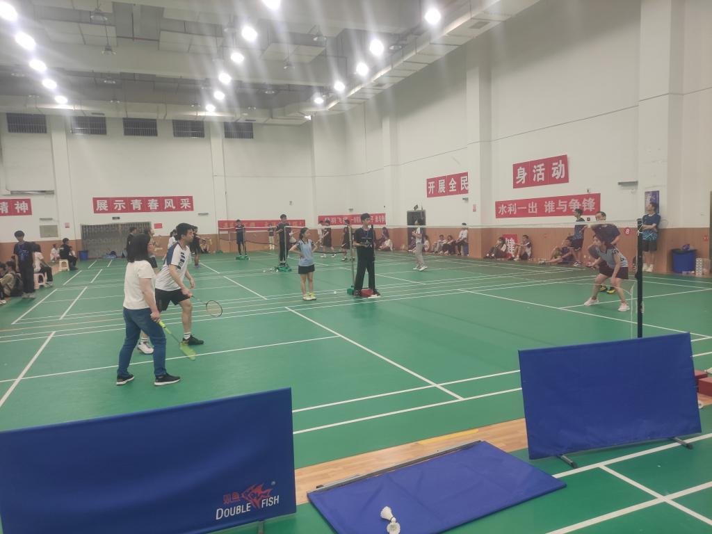 本次比赛,我院分别对战物电学院、水利学院和交通学院。比赛分为教师男双、教师女双、师生混双三个项目,采取分组淘汰制,分小组赛、半决赛和总决赛。比赛采用中国羽协审定的最新《羽毛球竞赛规则》及世界羽联公布的最新规则。在赛场上,参赛队员们活力四射,尽显风采,将各路球技展现得淋漓尽致。比赛过程紧张且欢乐,参赛队员们竭尽全力,充分展现了团结向上的良好精神风貌,展示了教师与同学们强烈的集体荣誉感。