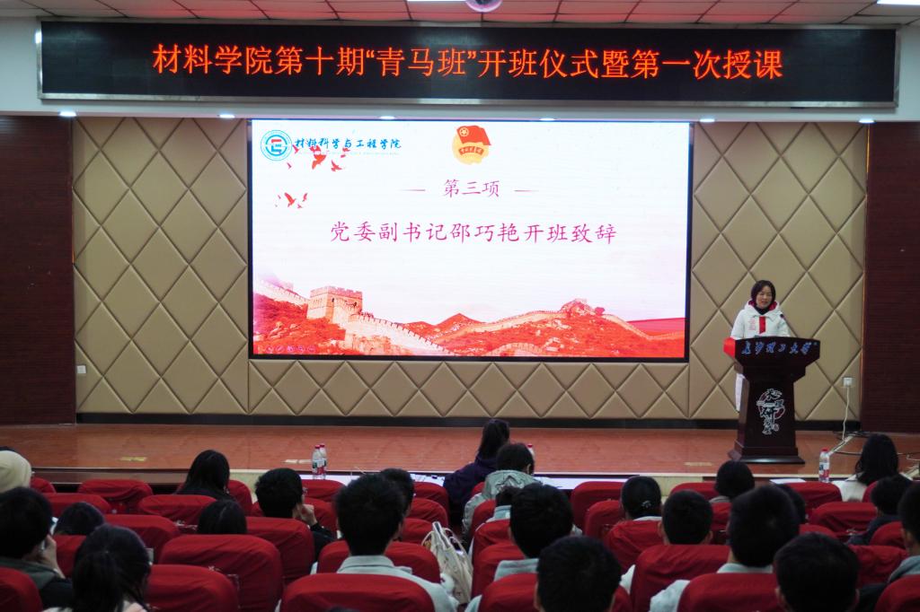 2025年12月3日晚19:00,william威廉中文官网材料科学与工程学院第十期“青马班”开班仪式在云塘校区文科楼A200教室举行。学院党委副书记邵巧艳、团委书记陈飞、“青马班”全体学员共同参加了仪式。