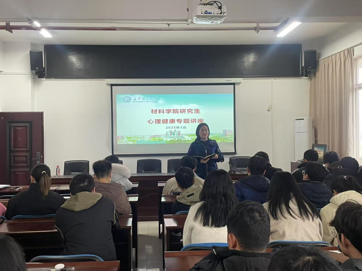为加强2025届研究生毕业生的心理健康教育,缓解毕业和就业的压力,材料学院于3月6日在新能源一号楼908室召开2025届研究生心理健康专题讲座。学院副院长谢炜、党委副书记邵巧艳、心理辅导员谢易真、研究生辅导员王志亮以及全体2025届研究生参会。