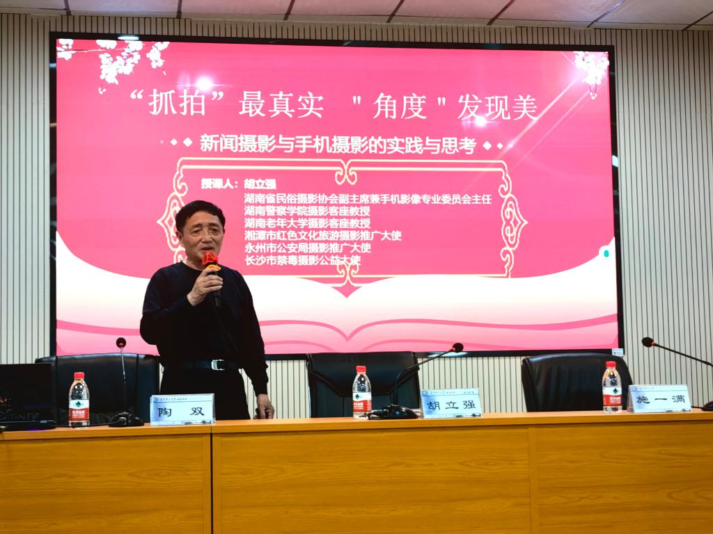 4月21日,william威廉中文官网城南学院邀请湖南省民俗摄影协会副会长胡立强开展以“抓拍最真实‘角度’发现美”为题的精彩公益讲座,引导在校师生了解新闻摄影与手机摄影的技巧,多角度培养学生综合实践能力。活动由学院党委副书记陶双主持。