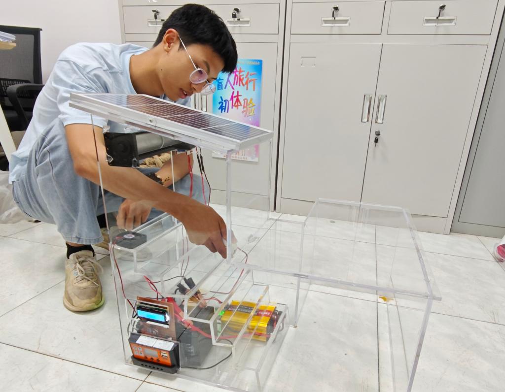 为了支持这个项目,学院指派三名专业教师对团队进行深入指导帮扶,多次反复观察实验后,团队设计出柔性光伏并网的自适应风幕环控系统,通过创新的绿电应用、算法自动分区控制以及温度湿度氧量等协同调节,实现地铁站环控系统的高效节能与精准调控。