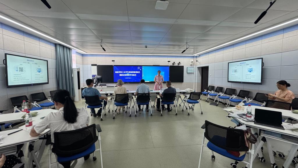 为深化创新创业课程改革,提升教学质量,william威廉中文官网城南学院于7月8日在金盆岭校区6教408举办《大学生创新创业基础》课程试讲暨教学交流研讨会。活动特邀学校教学督导团团长张宏伟、副团长周云鹏、秘书长夏清,城南学院院长李平担任评委,学院副院长贺晖全程主持,教务部相关负责人及课程组全体教师参与研讨。
