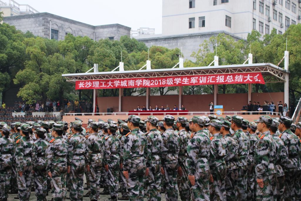 10月19日下午,在金盆岭校区田径场上,五星红旗伴随着庄严的国歌声冉冉升起,城南学院在此举行2018级学生军训汇报总结大会。副校长谈传生、学工部副部长霍向阳以及城南学院全体院领导出席,大会由城南学院党委副书记王明彦主持。