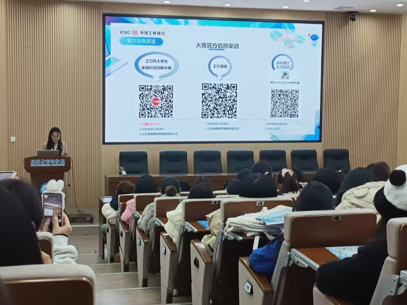 11月9日下午,2024年“工行杯”全国大学生金融科技创新大赛宣讲会在经管大楼A100会议室举行。本次宣讲会旨在激发大学生对金融科技领域的兴趣与热情,推动创新思维的碰撞与实践能力的提升。宣讲会特别邀请了中国工商银行湖南省分行金融科技部经理陈佩作为主讲嘉宾。城南学院经济管理系部分学生代表参加。