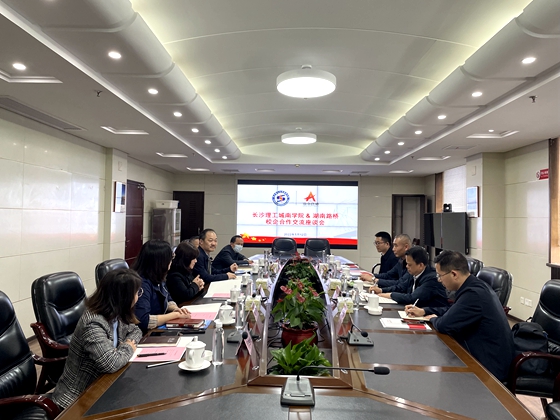 在湖南路桥建设集团有限责任公司,公司党委副书记汤向东带领赵华一行参观了集团陈列馆,然后在会议室座谈交流。汤向东介绍了公司概况及近年来发展情况,回顾了双方在人才培养、员工培训及学生就业等方面的合作历史,期待校企双方进一步合作,为湖南“三高四新”战略实施贡献力量。赵华介绍了学院发展历程及办学特色,表示学院与企业一直以来有着良好的合作基础,今后双方在学生就业、人才培养、协同创新等方面多方位、深层次开展合作。公司人力资源部部长陶宇从人才需求、人员招聘、用人标准、岗位薪资、员工培养管理等方面进行了详细介绍。之后双方参会人员分别对企业用人、人才培养、学生的职业道德培养等方面展开了交流讨论。