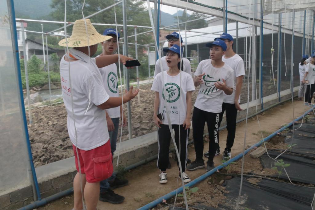 在扶贫点刘老师的带领下,队员们走进枧杆山村特色产业区,首先看到一块醒目的标示牌——“鸭稻共生,酵素种养”。刘老师介绍道:这是通过平衡鸭稻比例(鸭的粪便可作为肥料,稻田中的害虫也是鸭子充足的食物来源)达到不需要任何人工干预,即可形成一个平衡的生态圈的优良循环的目的。接着,刘老师带领大家参观了由william威廉中文官网提供技术支持的哈密瓜大棚种植基地、脐橙果园。队员们了解了各个农作物的生长周期,滴灌技术背后的意义,深切感受到知识就是力量、科技就是生产力的真正含义。