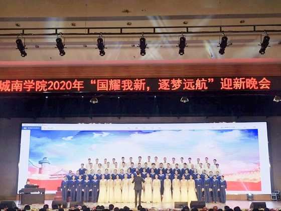 12月26日晚,城南学院2020年“国耀我新 逐梦远航”迎新晚会在金盆岭校区五教大礼堂举行。院党委书记黄自力,院长赵华,副院长李晓铭、郝宁、向永生,院党委副书记王明彦以及相关师生代表共1000余人观看了演出。