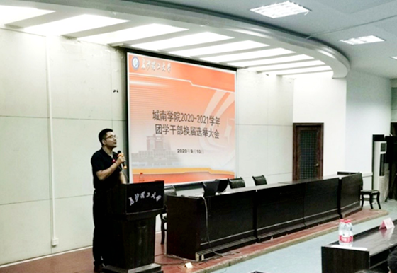 9月10日晚,城南学院在12教200召开了2020-2021学年团学干部换届选举大会。院党委副书记陶传谱、团委书记胡巍、外语文法系辅导员周心怡,各学联组织代表以及各系团学干部代表共计100余人参加了本次会议。