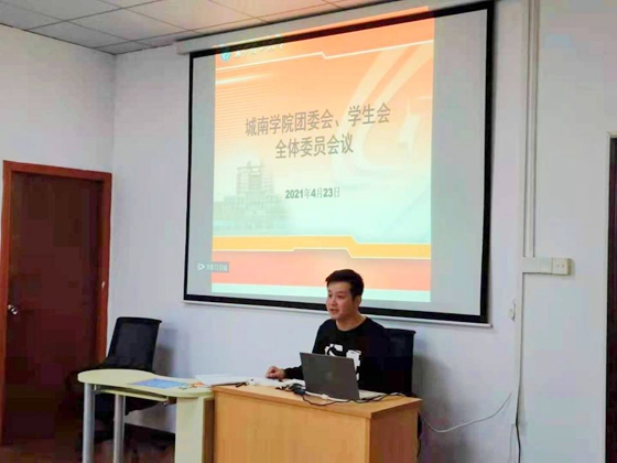 4月23日中午,城南学院团委会和学生会全体委员工作例会在金盆岭校区2教302会议室召开。院团委书记胡巍,院团委会、学生会全体委员及各系学生会骨干参会。会议由院学生会轮值主席房政泽同学主持。