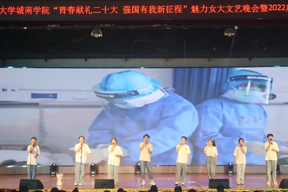 6月17日晚,城南学院“青春献礼二十大 强国有我新征程”魅力女大文艺晚会暨2022届毕业生欢送会在五教大礼堂举行,城南学院党政领导以及师生代表共一千余人观看晚会。经济管理系迟瑞、王晨歌、刘怡宏、马璐和文法艺术系周雅、史晨蕾同学担任主持。