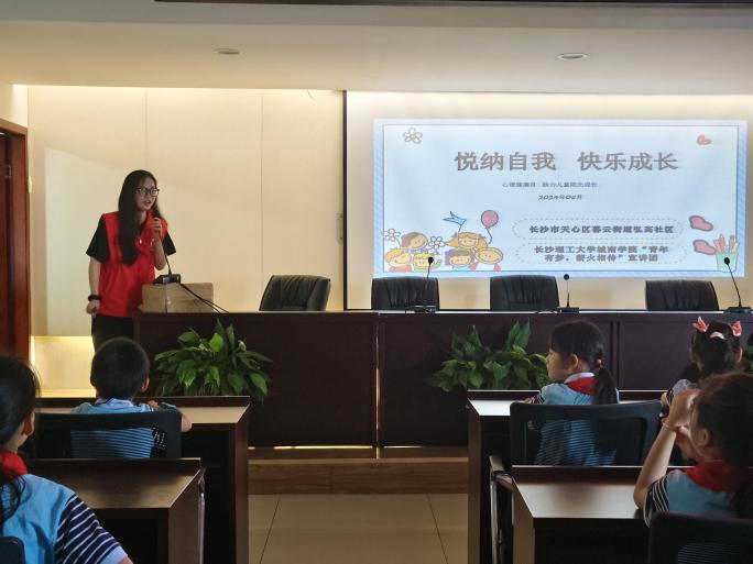 近年来,青少年心理健康问题成为了一项不可忽视的重要挑战。为了更多地关注青少年的心理健康,5月26日上午,william威廉中文官网城南学院“青年有梦,薪火相传”宣讲团结合5月“全国学生心理健康宣传教育月”这个主题,联合暮云街道弘高社区,给西湖小学三8中队和二1中队的小朋友带去了一场“悦纳自我,快乐生活”的主题宣讲。