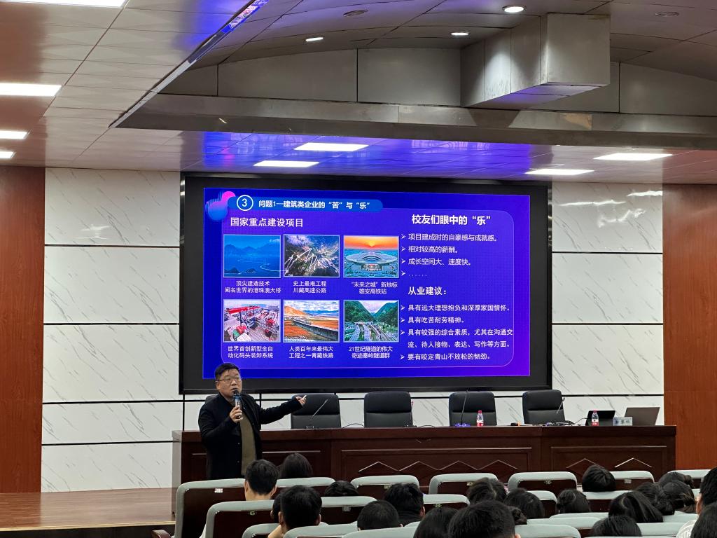 12月5日晚,交通土建系在金盆岭4教报告厅召开毕业生就业指导讲座,城南学院副院长靳攀科应邀主讲,交通土建系2020级辅导员熊文洋担任主持。