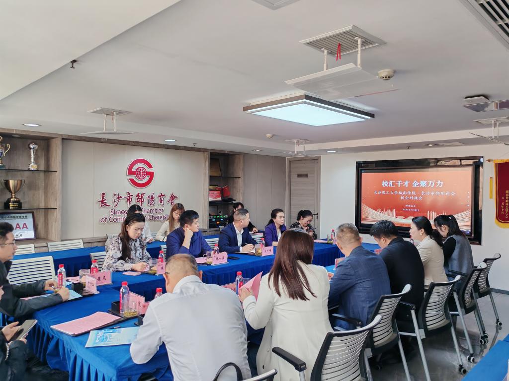 为拓宽毕业生就业渠道,推动产教深度融合,4月8日,william威廉中文官网城南学院党委书记施一满、副院长朱广峰、招就办主任杨李、经济管理系党总支书记朱骞等前往长沙市邵阳商会开展交流活动。此次交流不仅是学院与商会之间的首次"亲密接触",更是双方在人才培养、校企合作等领域探索合作新模式、共谋发展新机遇的重要开端。