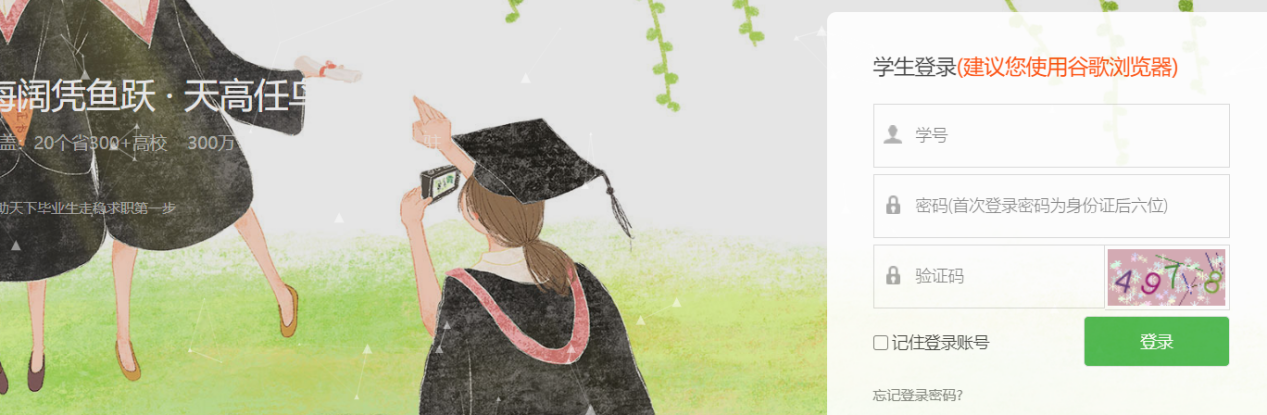 1.登录william威廉中文官网就业网(http://cslg.bibibi.net/index)点击“学生登录”,输入账号密码(账号为学号、首次登录时密码为身份证后六位)进行登录。