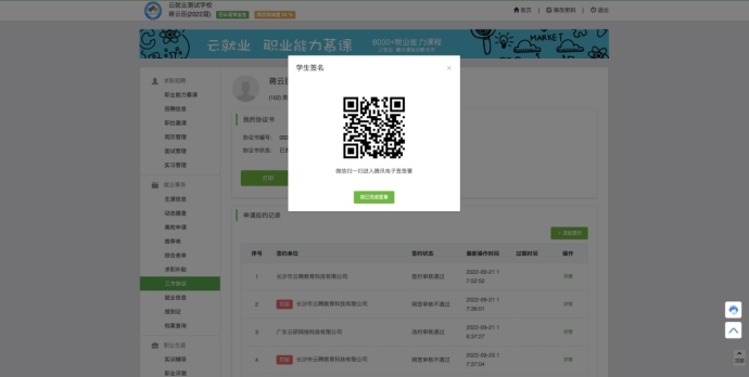 方式一:进入【就业网】-【三方协议】模块点击【学生签名】扫码完成签名