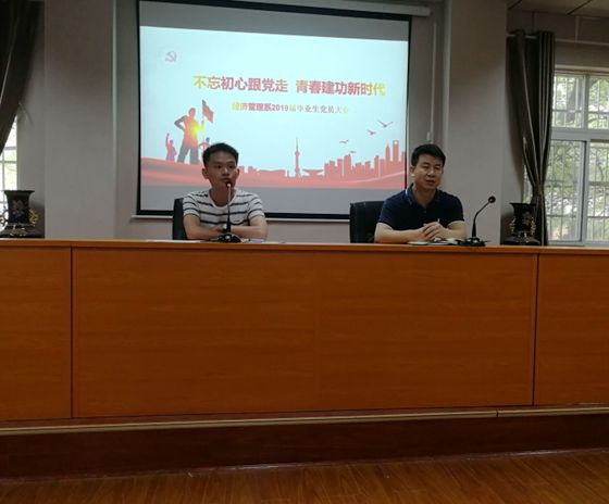 6月6日上午10点,经济管理系全体毕业生党员在二教201召开“不忘初心跟党走,青春建功新时代”离校专题会议。会议由经济管理系党总支副书记谭怀芝主持。系党总支书记周常国及相关师生参加会议。